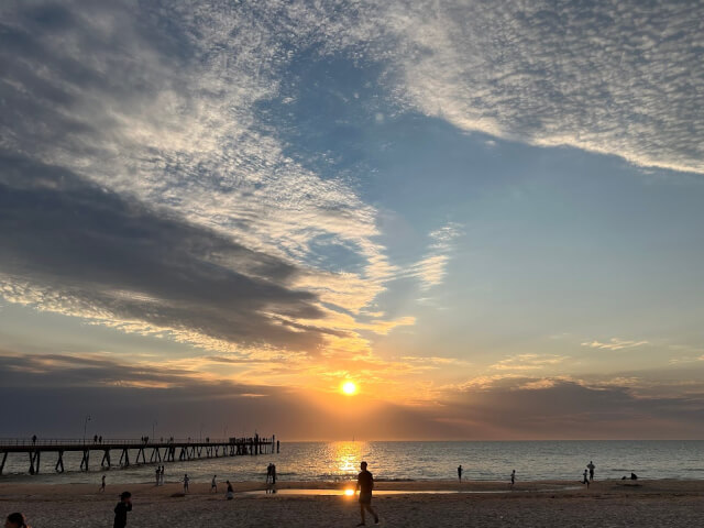 1日目はまずアデレードとはどんなところなのか知るために、シティーを歩き回りました。今回の旅の一番のお目当ては、アデレードからバスで1時間ほど郊外に行ったところにある、Hahndorf という街です。名前が少しヒントかもしれませんが、オーストラリア最古のドイツ街です。Hahndorf をひとことで言うと、「かわいい💝おいしい🤤」でした。ドイツのクリスマスマーケット風の小さなお店はとってもかわいくて、しあわせな気分に包まれました。ランチにはソーセージ🌭とビール🍺をいただきました。そのあと、お腹いっぱいなのに、Belgium hot chocolate って書いてある看板に吸い込まれて買ったホットチョコレート☕️は、人生で一番おいしくて、自分の語彙力では表せないくらい感激しました。作り方を聞けばよかったです。そのあとは、毎回の旅行恒例の、ビーチに行きました。海なし県で育ち、今も海から遠いバララットに住んでいるため、ビーチや海にとんでもなく魅力を感じます🏖️海音を聞いて座っているだけでもいいし、音楽を聴きながら海沿いを歩いているのも気分が晴れます。