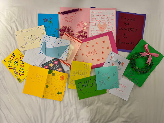 12月の中旬、ついに派遣期間が終了しました😢 最後の数週間ではたくさんの生徒からThank-you cardや手紙、ギフトをいただき、とてもいい子たちに恵まれて一年間を過ごせて本当に幸せだと感じました。Year 7のあるクラスでは、お手紙をもらって教室で読んで大号泣してしまい、子どもたちからたくさんのハグをいただきました…🥹❤️